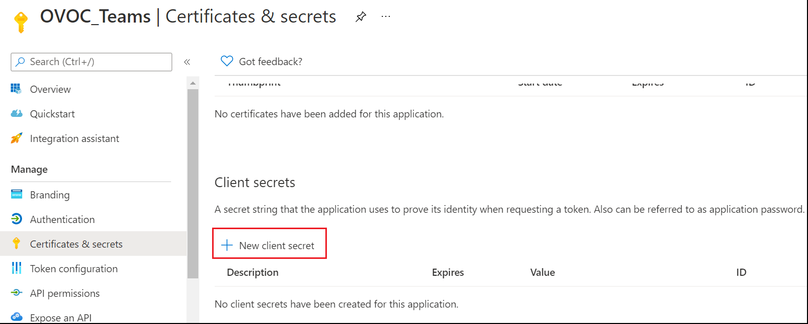 | 6. | Click New client secret. |