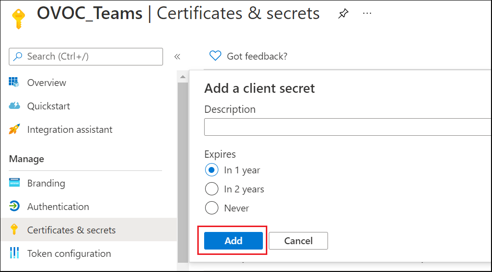 Added Certificates & Secrets
