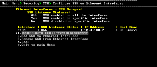 You can allow or deny SSH access separately for each network interface enabled on the OVOC server.