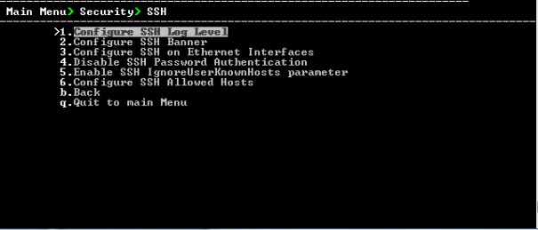 | ● | Configure SSH Log Level (SSH Log Level). |