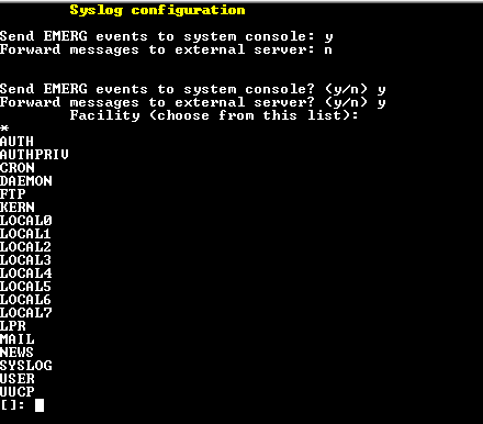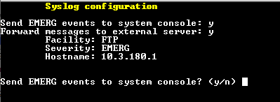 To send EMERG events to the system console, type y, press Enter, and then confirm by typing y again. |
