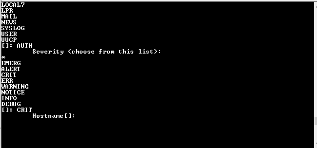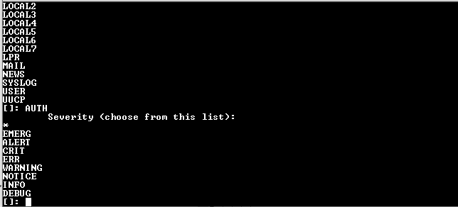 Type one of the following Facilities from the list (case-sensitive) or select the wildcard * to select all facilities in the list, and then press Enter: |