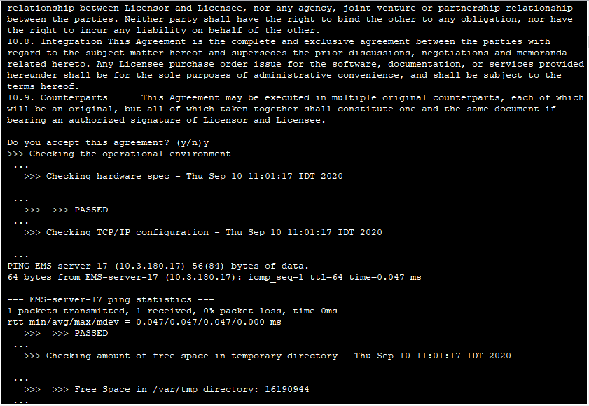 You are prompted to either run a Full Upgrade procedure affecting QoE data (Calls, Calls Details and Calls Statistics) and Performance Monitoring data. As an alternative, you can run a shorter execution, however in this case, existing QoE and Performance Monitoring data is not saved. Enter y to run the full Upgrade. |