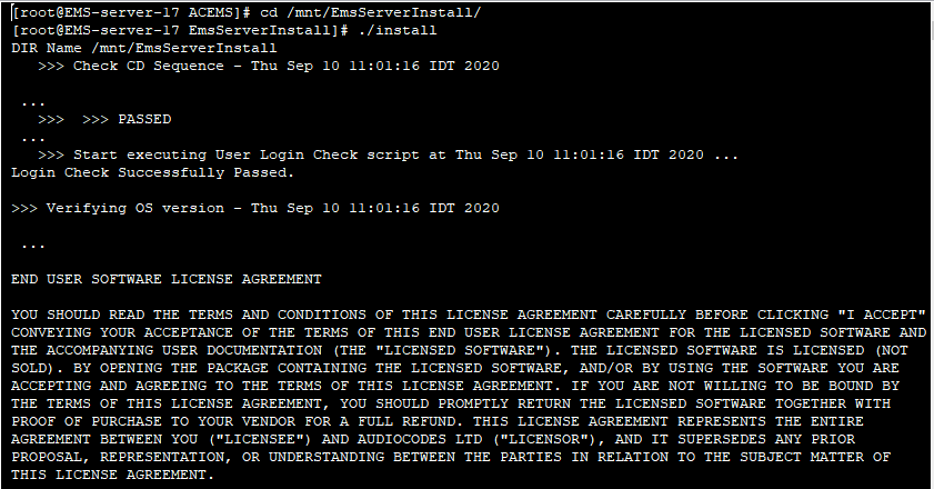 If you are prompted to reboot, press Enter to reboot the OVOC server and then repeat steps 2-7 (inclusive). |