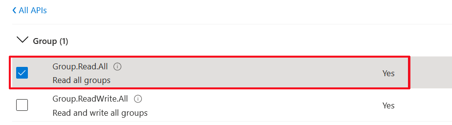 | 11. | Select permission Group.Read.All and then click Add permission. |