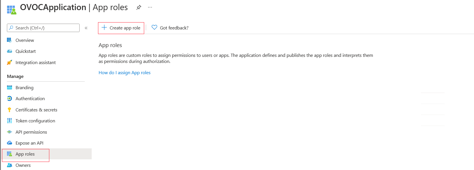 | 16. | Repeat the above steps to create an App role with Operator permissions with value 'OVOCOperator". |