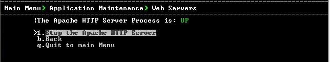 | 2. | Select option Stop/Start the Apache HTTP Server, and then press Enter. |