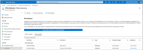 This procedure describes the actions required for granting admin consent for the OVOC application.