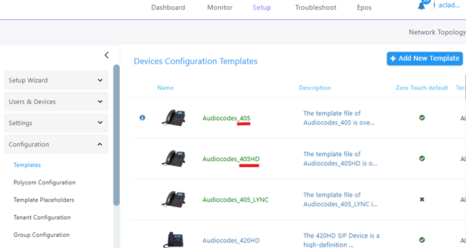 A default device configuration template has been added for 405HD IP phones (which is different from the 405 template).