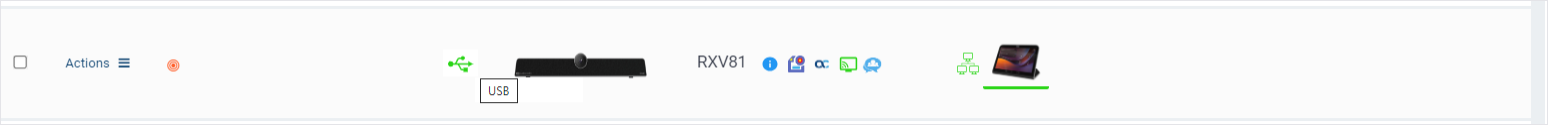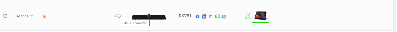 The status 'USB Disconnected' is displayed when hovering over the device. Disconnecting the RXV81 BYOD does not move the device to operate as an MTRA. It state is defined as a BYOD device that is not connected to any PC with USB.
