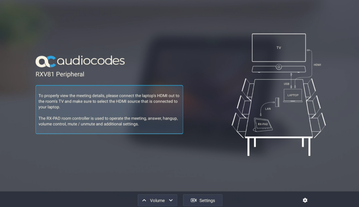 RXV81 MTRA and RX-PAD Controller support ad hoc peripheral mode. When RXV81 MTRA is connected via USB to a PC/laptop, it automatically moves to ad hoc peripheral mode and the following is displayed on the RX-PAD: