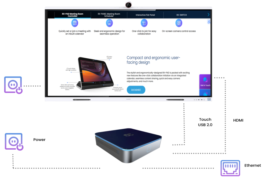The RXV200 AV compute unit integrates with the client’s touch screens without the need for an RX-PAD.