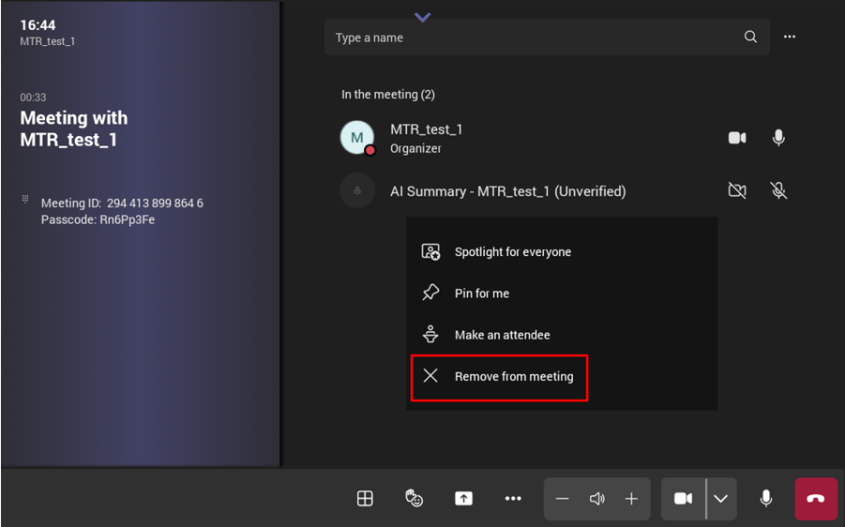 Once the AI Summary bot is active, you can always tap Remove from meeting and remove the AI Summary feature from the meeting.
