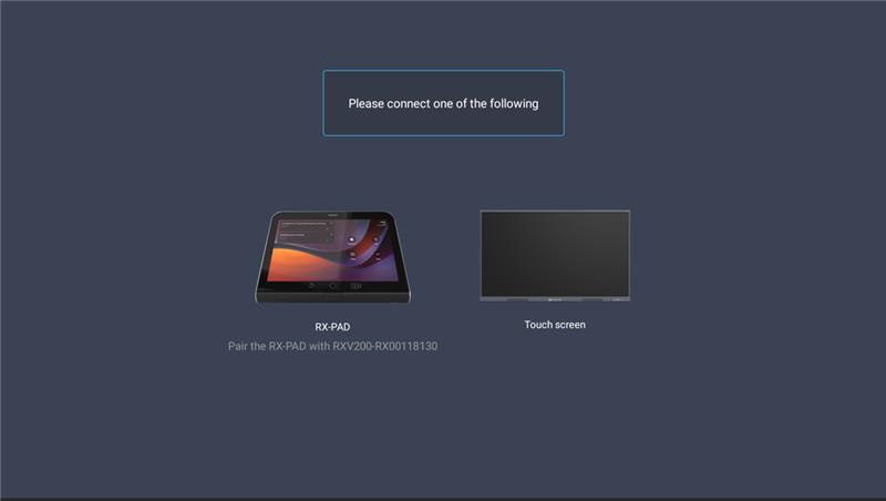The RXV200 starts up and prompts you to connect an RX-PAD or a touch screen. |