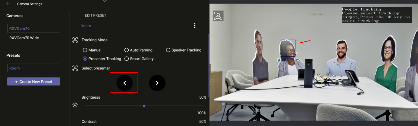 To select a presenter to track in Camera Settings: |