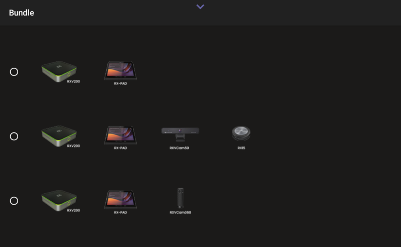Select the relevant RXV200. The RX-PAD finalizes the pairing process and prompts you to select a bundle. |