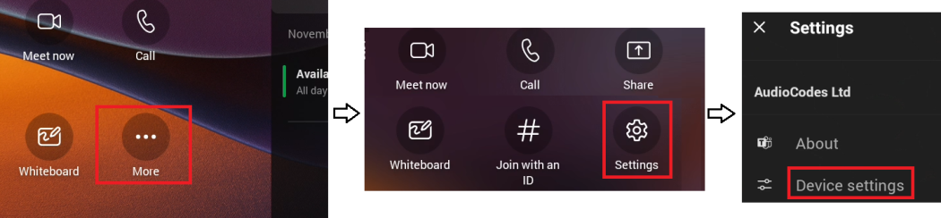 Tap the More option, then tap the Settings option, then tap Device Settings.