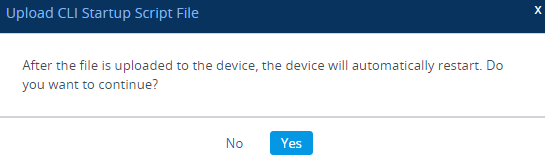 Click the Upload CLI Startup Script button; the following message box appears: |