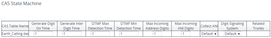 |  | ● | Field values displaying "-1" indicate CAS default values. In other words, CAS state machine values are used. |