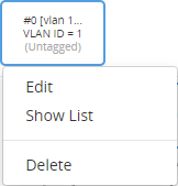 Displays configured Ethernet Devices (see Configuring Underlying Ethernet Devices). The Ethernet Device appears as an icon, displaying the row index number, name, VLAN ID and if its tagged or untagged. If you click the icon, a drop-down menu appears, listing commands: