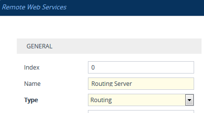 | 3. | Configure the address and connection settings of ARM, referred to as a Remote Web Service and an HTTP remote host (see Configuring Remote Web Services). You must configure the 'Type' parameter of the Remote Web Service to Routing, as shown in the example: |