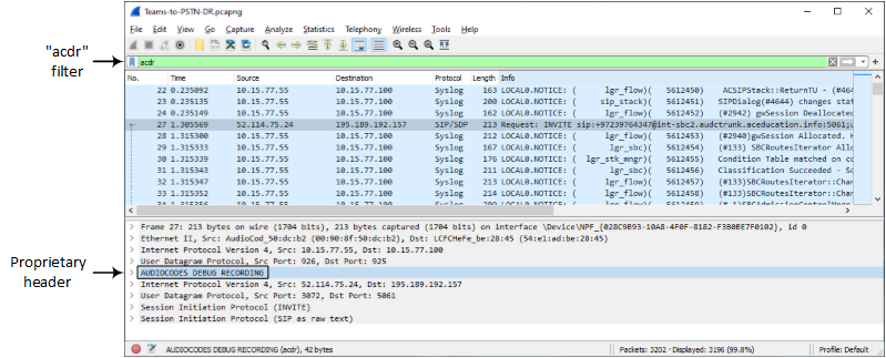 To collect debug recording packets, use the open source packet capturing program, Wireshark. This allows you to analyze AudioCodes debug recording protocol.