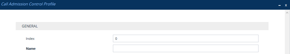 | 2. | Open the Call Admission Control Profile table (Setup menu > Signaling & Media tab > SBC folder > Call Admission Control Profile). |