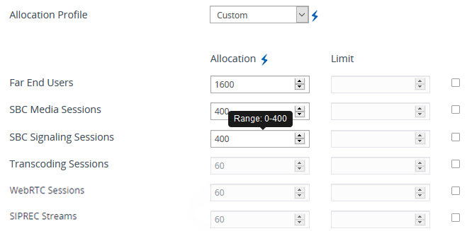 From the 'Allocation Profile' drop-down list, select an SBC license Allocation Profile: |