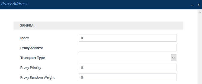 You must configure both priority and weight (or none of them). In other words, if you configure this parameter, you must also configure the 'Proxy Random Weight' parameter. If you don't configure this parameter, you must also not configure the 'Proxy Random Weight' parameter.