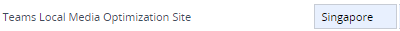 3. Open the IP Groups table (see Configuring IP Groups), and then for each IP Group representing a Teams site, configure the 'Teams Local Media Optimization Site' parameter to the site's name. The site's name must be the same name as configured in the Dial Plan rule (configured in Step 2). For example, below shows the IP Group for the Singapore Teams site: