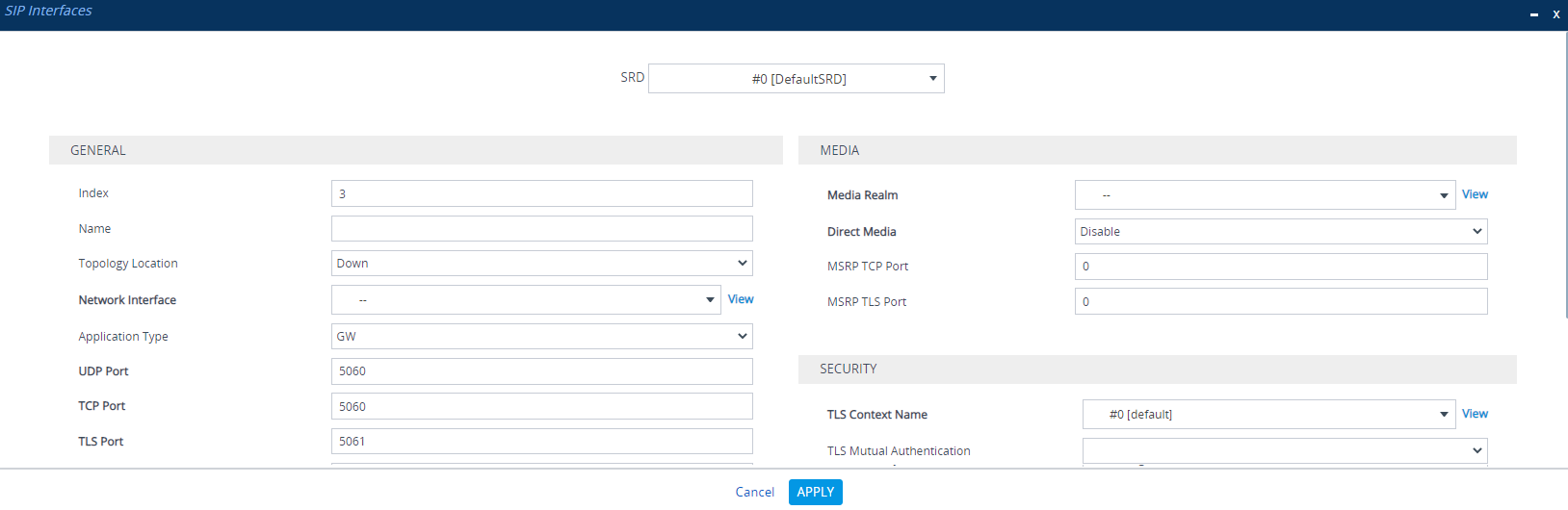 | 3. | Configure a SIP Interface according to the parameters described in the table below. |