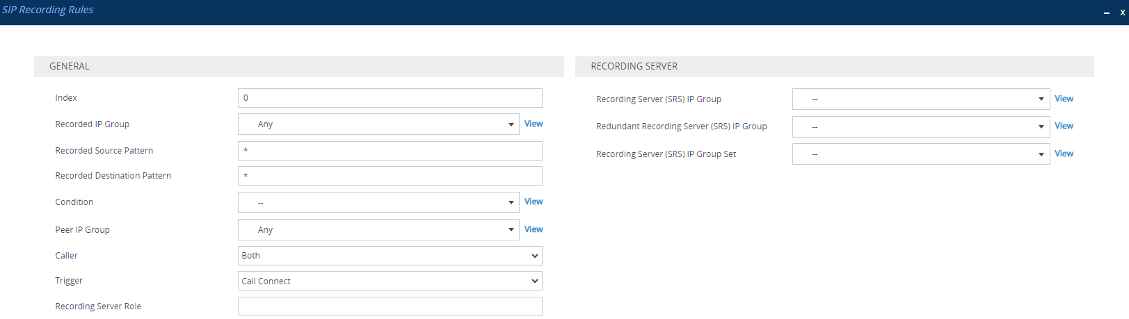 | ● | 'Recording Server (SRS) IP Group': "SRS-1" |