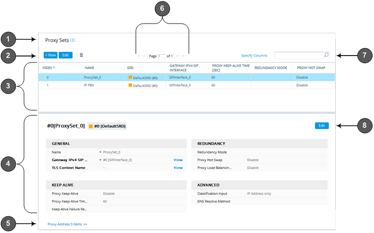 Page title (i.e., name of table). The page title also displays the number of configured rows as well as the number of invalid rows. For more information on invalid rows, see Invalid Value Indications. |