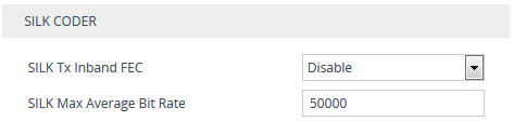'SILK Tx Inband FEC': Enables forward error correction (FEC) for the SILK coder.