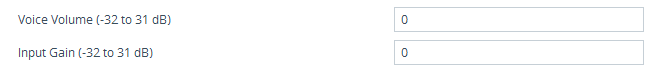 'Voice Volume' (VoiceVolume): Defines the voice gain control (in decibels) of the transmitted signal. |