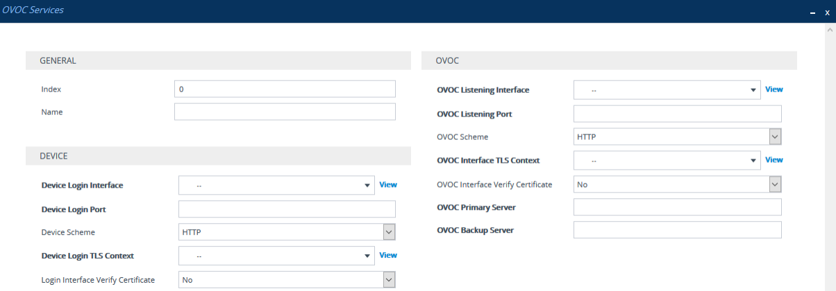 | 3. | Configure the OVOC service in the OVOC Services table (described below). This entails specifying the IP network interfaces as well as the port number within each interface to which the HTTP Proxy must listen to. |