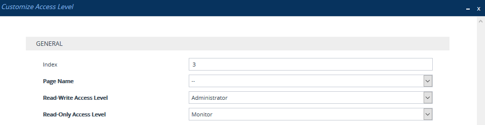The following procedure describes how to configure customized access level rules through the Web interface. You can also configure it through ini file [WebPagesAccessLevel].