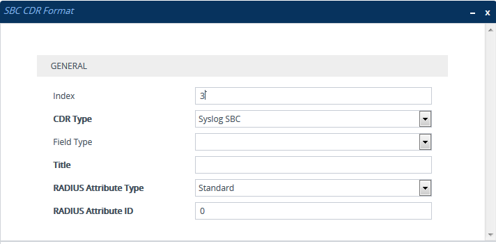 Note: For 'CDR Types' Syslog SBC, Local Storage SBC, and RADIUS SBC, the above media-related CDR fields are added only to "CALL_END" SBC signaling CDR report Types (which by default, include only signaling CDR fields).