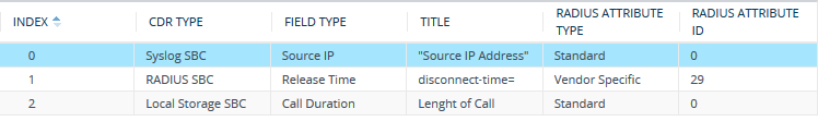 [7] RADIUS SBC = Customizes CDR fields (i.e., RADIUS Attributes) for CDRs sent in RADIUS accounting request messages. |