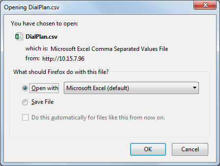 You can export your configured Dial Plans in comma-separated value (CSV) file format to a folder on the local PC running the Web client.
