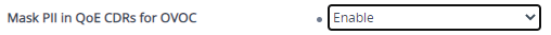 4. From the 'Mask PII in QoE CDRs for OVOC' drop-down list, select Enable to mask (with asterisks) phone numbers, URI user part, and display names that appear in CDRs that the device sends to OVOC:
