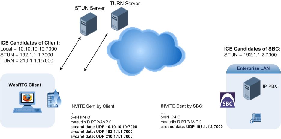 As the ICE technique has been defined by the WebRTC standard as mandatory for communication with the WebRTC client, ICE support by the device is important for deployments implementing WebRTC. For more information on WebRTC, see WebRTC. Once a WebRTC session (WebSocket) is established for SIP signaling between the device and the WebRTC client, the client's IP address needs to be discovered by the SBC device using the ICE technique.