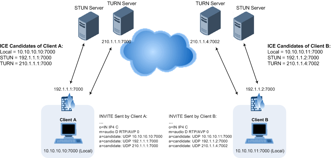 For clients behind NATs and/or firewalls to send media (RTP) between one another, they need to discover each others IP address and port as seen by the "outside" world. If both peers are in different private networks behind a NAT, the peers must coordinate to determine the best communication path between them.
