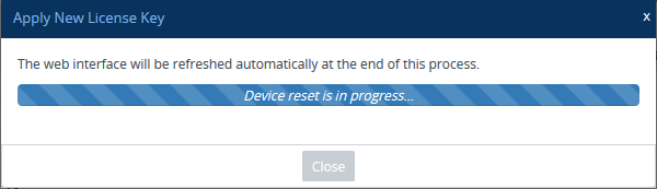 If want to cancel the License key installation, restart the device without a save to flash. For more information, see Resetting the Device.
