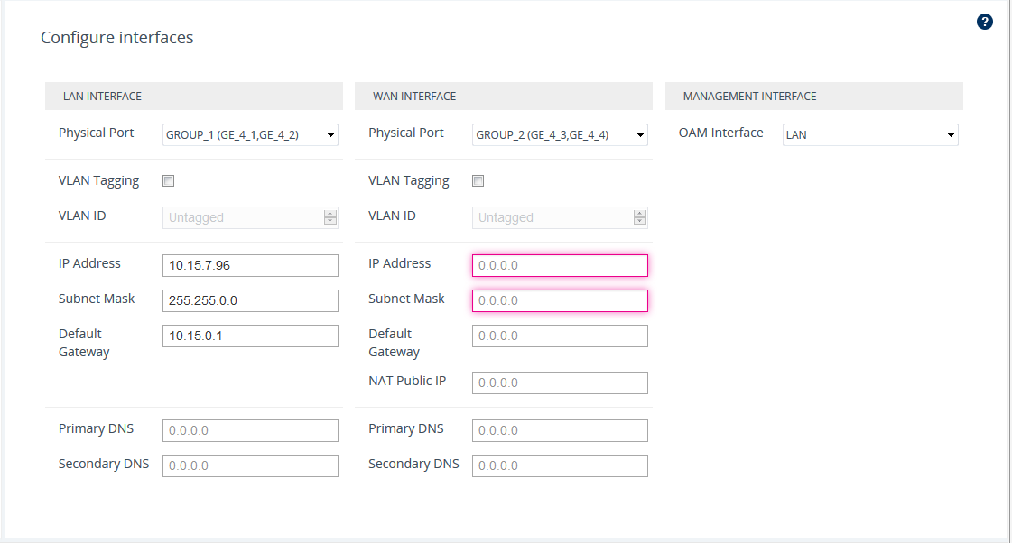 From the 'OAM Interface' drop-down list, select the device's interface for management traffic: |