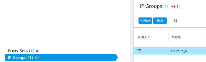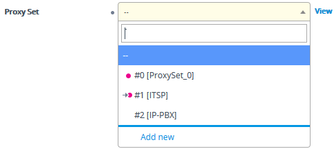 For example, when configuring an IP Group, the 'Proxy Set' parameter's drop-down list displays items: Proxy Set #0 with