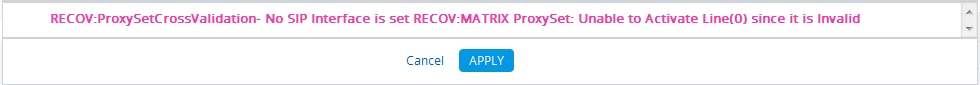 For example, if you do not configure the 'SIP Interface' field (mandatory) for Proxy Set #0, the Invalid Line