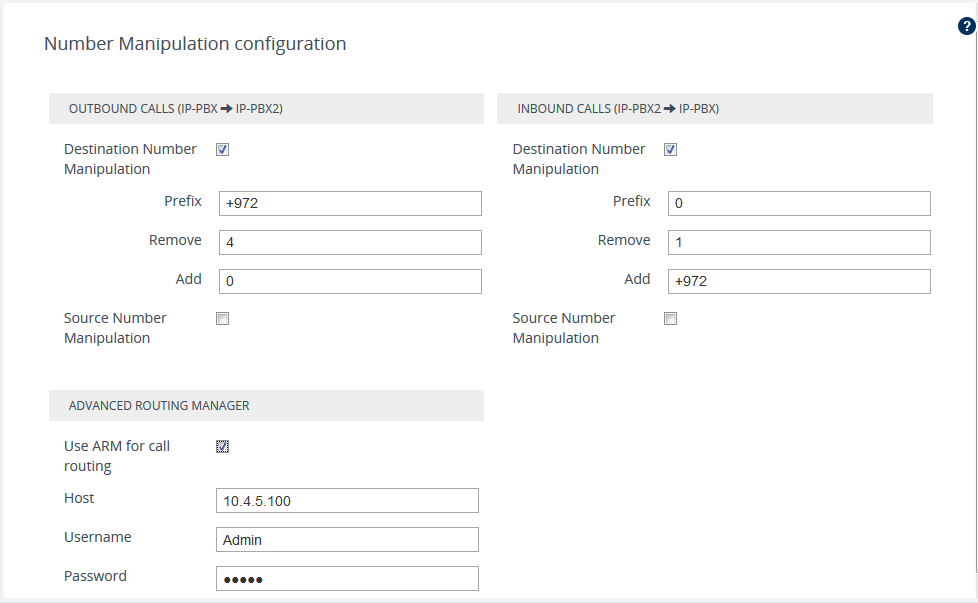 To enable routing by ARM, select the 'Use ARM for call routing' check box, and then configure the following fields: |