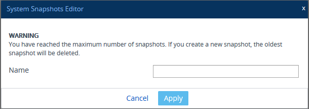 In addition to the "Fix-current-installation" System Snapshot, you can create another four System Snapshots (i.e., the device supports a maximum of five System Snapshots). If you have five System Snapshots and you create another System Snapshot, the new System Snapshot replaces the oldest one (i.e., first-in, first-out or FIFO).