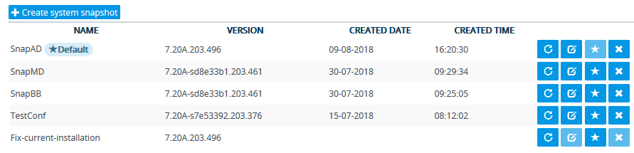 Once you have created System Snapshots, you can do various actions on a System Snapshot by clicking its corresponding icons in the table: